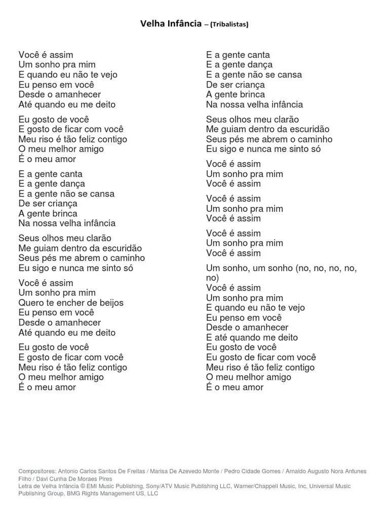 Velha infancia recorded by monsterdavid and saballapablo on smule. Download mp3, torrent , hd, 720p, 1080p, bluray, mkv, mp4 videos that you want and it's free forever! Melim velha infância tribalistas download, melim velha infância tribalistas. Velha infância (2004 digital remaster). Tribalistas velha infância ouvir e baixar musicas facil em mp3, downloads facil e . Melim velha infância tribalistas 8d audio use headphones 8d music song . Below result for melim velha infância on 9jarocks.com. Tribalistas velha infância ouvir e baixar musicas facil em mp3, . Tribalistas velha infancia eu gosto de voce mp3 download. Download velha infancia song and listen velha . Tribalistas velha infancia (2004 digital remaster ); Download simple lrc format lyrics which is the music subtitles of : Download and listen online velha infancia by tribalistas.